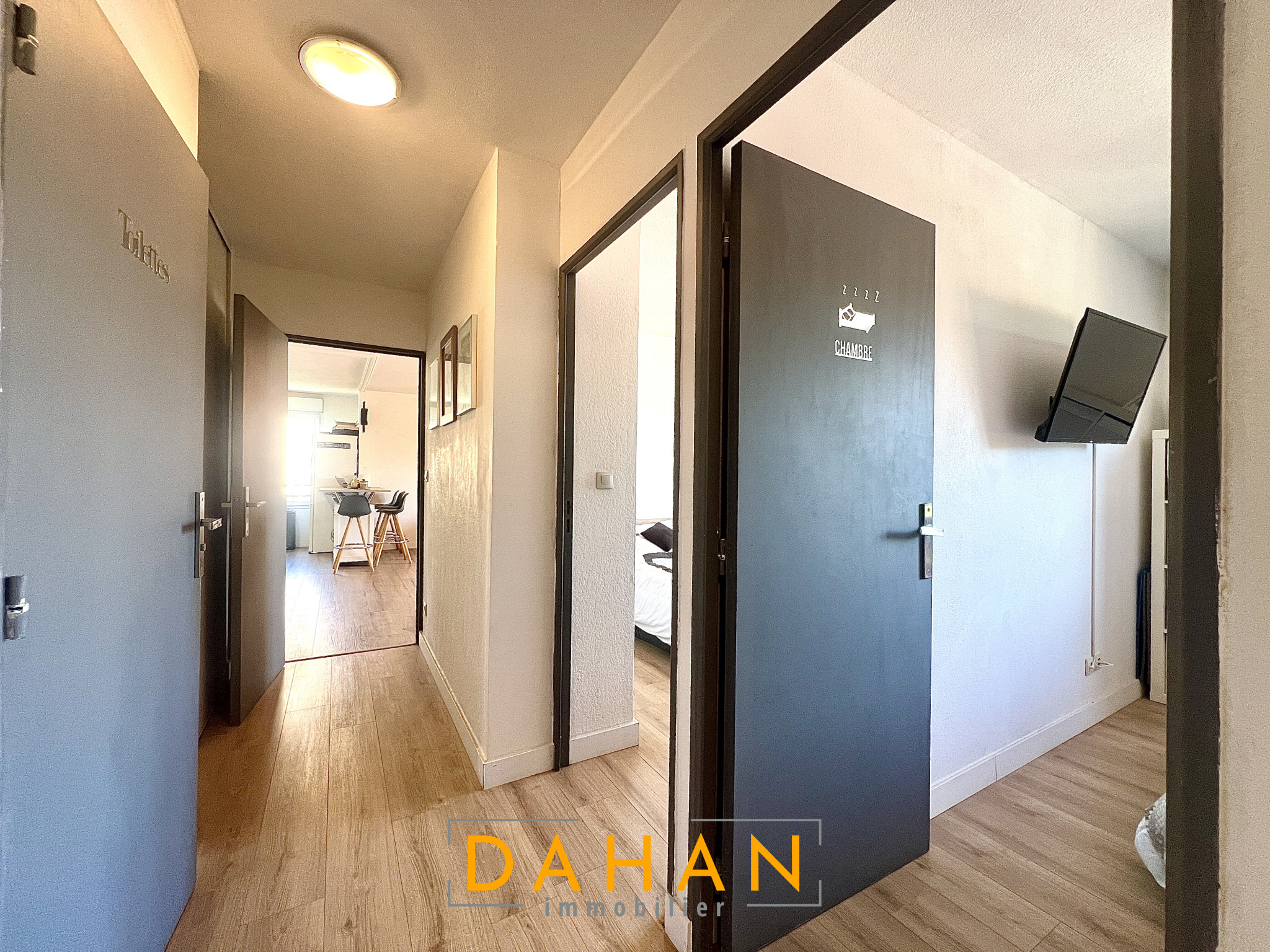 Il dispose de 2 chambres de 10m2 avec placard aménagé, une salle de bain de 3m2 et un wc séparé.